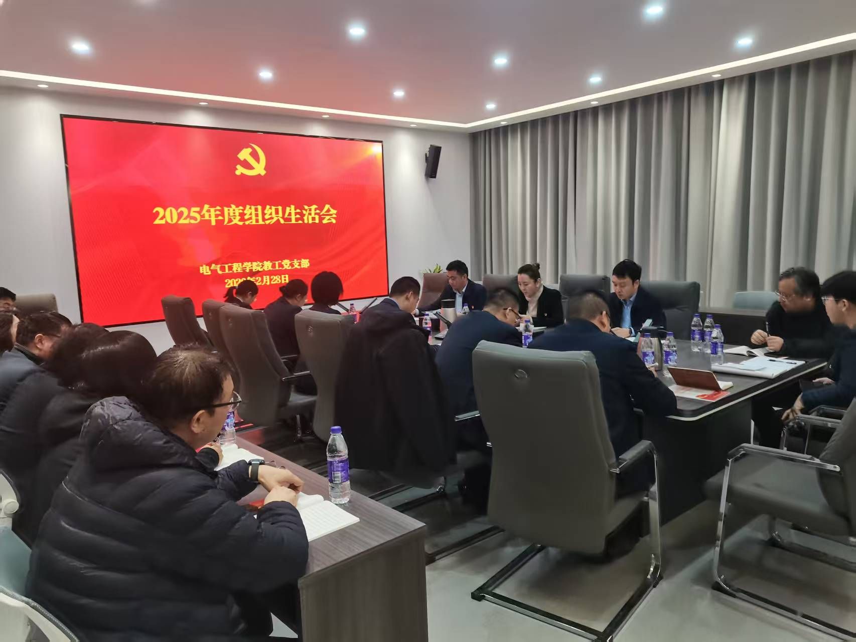 为深入学习贯彻党的二十届四中全会精神,坚持不懈用习近平新时代中国特色社会主义思想凝心铸魂,根据学校有关工作安排,2月28日电气工程学院教工党支部召开2025年度组织生活会,开展民主评议党员,支部全体党员参加了活动,学校纪委书记、工会主席寨淑慧到会指导。